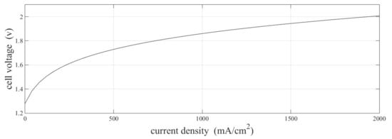 where F is the Faraday constant (96485C/mol), and η is the efficiency of the electrolyzer. The working characteristic curve of the PEM electrolyzer is shown in Figure 7.