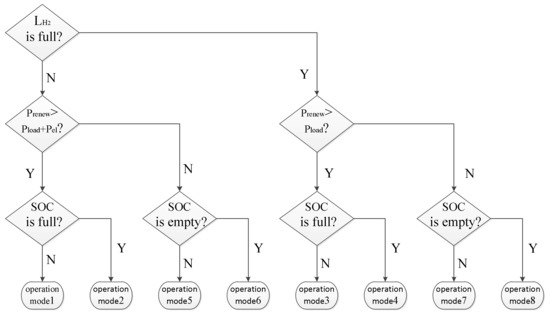 - Due to the uncertainty of renewable energy and the fluctuations of loads, a control method based on an expert strategy is proposed and verified using multiple scenarios. The working states are monitored for the operation strategy, such as the state of charge and the hydrogen storage level. The eight operation scenarios fully reflect the randomness of the entire system.