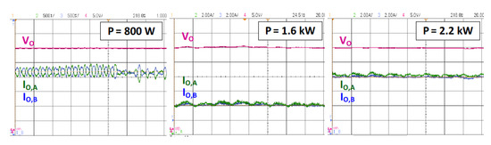 Figure 16. Experimental results under varying loads when using the current sharing parallel method.