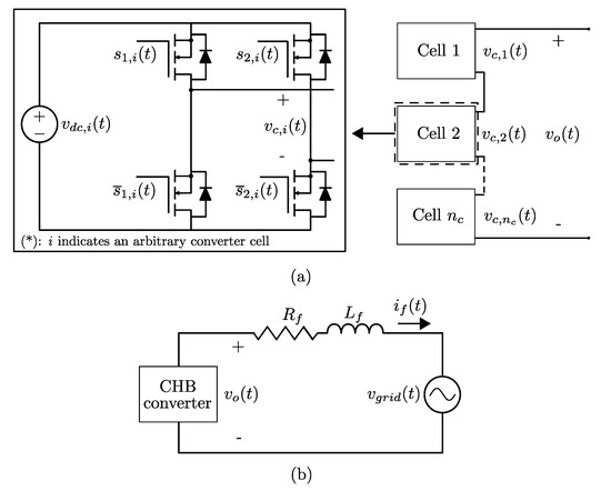 A single-phase cascade H-bridge inverter, connected to the grid through an inductive filter, has been chosen to explain the proposed theoretical approach. The power converter system is shown in Figure 1. Throughout the paper, scalars will be denoted in italic, whereas matrices and vectors will be denoted in bold. The system model is given by the following continuous-time system: