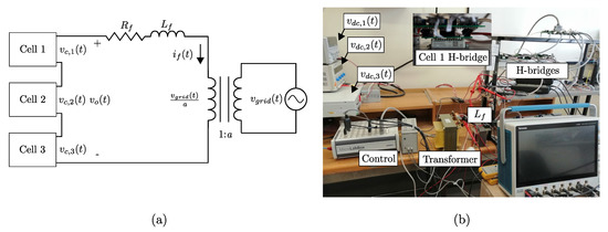 The experimental set-up used to test the proposal corresponds to a grid-connected single-phase CHB, Figure 6. Each cell of this converter was built with an H-bridge module FPF1C2P5BF07A fed by a constant DC source. The CHB converter is connected to the grid through an inductive filter and a link transformer. The system parameters are shown in Table 2.