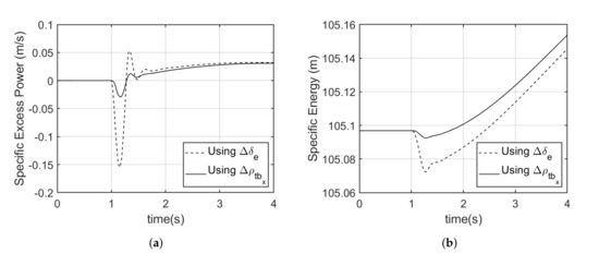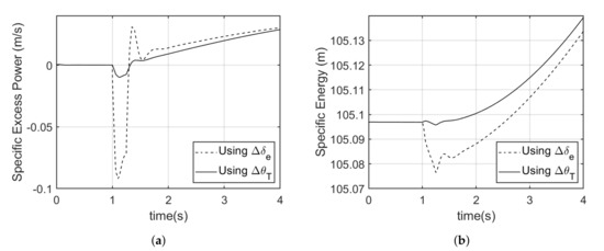 Generally, an aircraft that is able to maintain a higher specific energy and excess power has more maneuver advantage [40]. The negative average observed when using the elevator to initiate the maneuver results from the drag being greater than available thrust, which results in decreased energy. This is due to the additional drag induced as a result of elevator deflection [33,40].