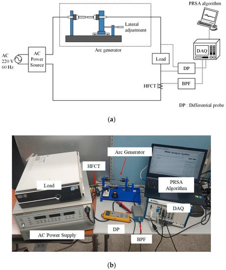 To prevent electrical fires in Korea, earth leakage breakers (ELB), mold case circuit breakers (MCCB), and fuses can be applied to electrical circuits for electrical shock protection by many electrical utilities and customers. However, they do not detect and interrupt an arc due to low amplitude [,]. In addition, it is hard to conduct a study on the characteristics of arc faults because they are highly variable in terms of the strength and duration of the current and voltage.