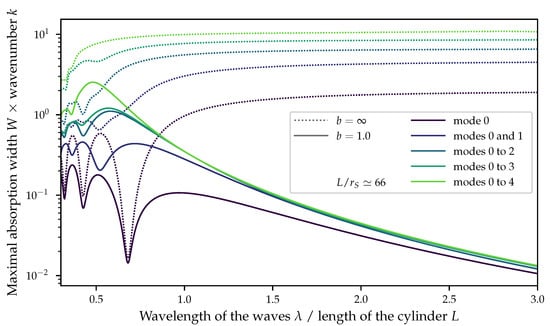 On Figure 5, the maximal absorption width has been computed for each of the first five eigenmodes of the cylinder individually (that is for five cylinders deforming each one along only one dof).