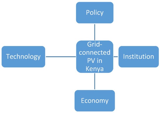 Also, not all the barriers identified by [] are relevant or applicable in the Kenyan context. These categories of barriers and opportunities for success were therefore revisited and updated to make them relevant in the Kenyan context. Consequently, the range of barriers constraining the deployment of PV was categorized into technological, economic, institutional and policy as shown in Figure 2. This categorization is applied as the analytical framework