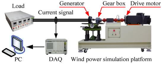 There have been considerable studies on the signal analysis of rotating machines, of which the vibration signal analysis was the focus [1,15]. Vibration signals can show the machine operation clearly. While measuring vibration signals, an accelerometer is a compulsory supplement. Additionally, one accelerometer can merely measure a single position’s vibration. Recently, more and more researches have used the fault diagnosis of electric currents and voltage [16,17,18]. Electric currents and voltage can lessen the number and cost of sensors, complexity of measurement system, and failure rate.
