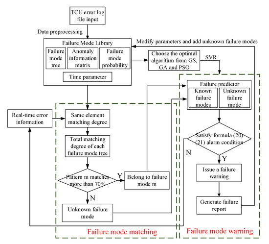Figure 9 shows the flow chart of the early warning method. Suppose the time from the recording of the n-th exception information to the failure of the TCU is tr, the time when the predictor issues an early warning and the system responds is tp, and the maintenance time is tq If tp + tq ≤ tr is satisfied, it means that the warning issued at this time is valid, and then the system can promptly respond and perform maintenance, which can ultimately avoid failure. If tp + tq > tr, even if the alarm is issued at this time, the system could not handle it in time, which requires manual maintenance, and the warning is invalid. When an invalid early warning is issued, it is essential to slightly lower the failure mode probability threshold so as to ensure that all work can be completed in enough time.