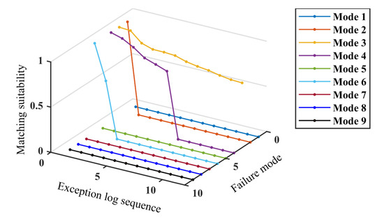 When the real-time exception information vector is continuously imported into the failure predictor, the system first dynamically matches the failure mode according to the failure mode matching algorithm in part 3.2. Figure 11 shows the matching process of the exception information vector in a certain period of time.