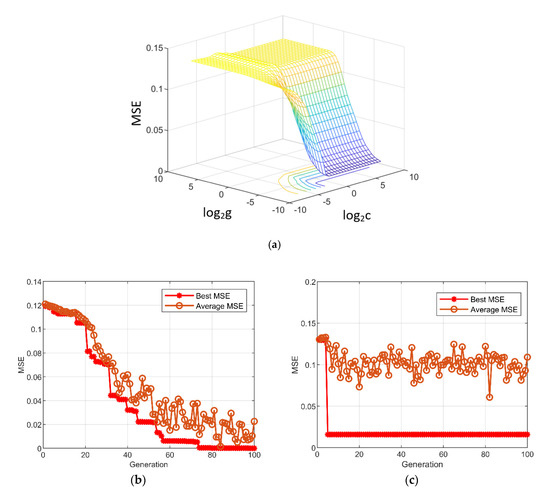 In fact, it will not be so complicated in actual engineering applications. Parameter selection is required when a certain failure mode appears for the first time. Neither the parameter c nor the parameter g can be too large or too small because this will affect the effect of the SVR. For our system, c generally takes 0.1–10, and g generally takes 0.001–0.05. Therefore, when MSE is less than 0.01, and r2 is greater than 0.95, the c and g obtained by the optimization algorithm only need to be in the above-mentioned range (all three methods in the paper are satisfied). After that, the two coefficients will be stored in the system and applied when the next failure of the same type occurs.