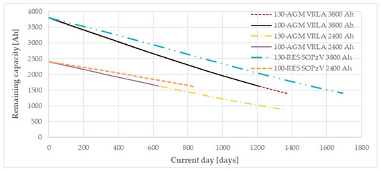 - The estimation of the economic lifetime of the battery, which takes into consideration (a) the battery capacity degradation and (b) the operation failure of the SAPV due to energy deficiency of the PVs-batteries system. The energy deficiency avoidance ensures high reliability in the operation of the SAPV system from the energy supply capacity point of view.