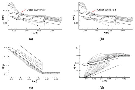 The airflow of the outer swirler is close to the wall and protects the first inducting slab. The cooling air from multi-inclined holes flows close to the second inducting slab, which isolates hot gas and the flame tube and avoids the excessively high temperature of the inducting slab;