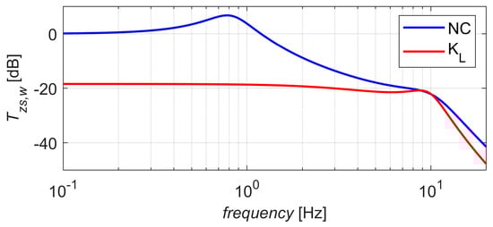 The coefficients in the Formula (36) were Analyzing Figure 3, it can be noticed that above the vibration transfer function has values below −. This indicates that the vehicle roll reduction should be most effective in the range up to .