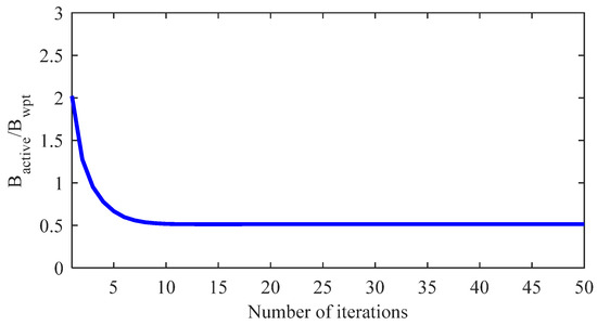 Ratio of Bactive/Bwpt vs. number of iterations of the Gradient Descent for test case #2.