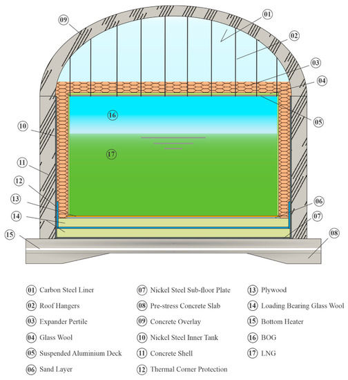 - Jeon, S.-J.; Jin, B.-M.; Kim, Y.-J.; Chung, C.-H. Consistent thermal analysis procedure of LNG storage tank. Struct. Eng. Mech. 2007, 25, 445–466. [Google Scholar] [CrossRef]