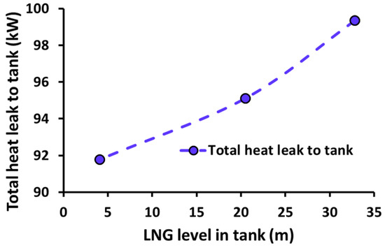 The steady rate of heat leakage in the LNG tank for different liquid levels.