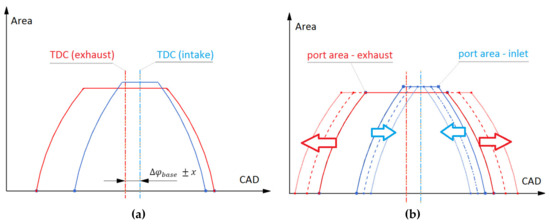 Two-stroke engines require optimal control of the opening and closing angle of the intake and exhaust valves for proper scavenging efficiency. Using the system allows to control the internal Exhaust Gas Recirculation (EGR) amount.