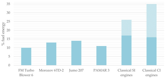 Differences for individual engines may of course be caused by different swept volume and operating conditions, as engines with a larger capacity will have lower heat losses. The year of production of the engine is also important, as the current engines have lower heat losses due to the use of various design improvements. In