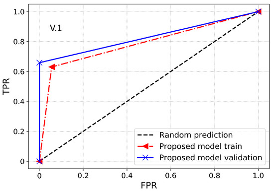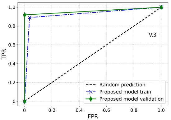 Furthermore, a performance index that is more reliable and accurate for an imbalanced dataset is the AUC. It provides a more realistic assessment of the model’s detection performance in terms of ETD over the imbalanced dataset. Essentially, it is the likelihood that the model ranks a positive sample higher than the negative sample. AUC is also identified as the area under the receiver operating characteristic curve (ROC-AUC). ROC-AUC is used to evaluate the model’s capability to make the separation between the classes. Thus, it is a graphical representation to evaluate the ETD performance of a model by plotting the TPR against the FPR. Moreover, the area under the ROC curve is estimated between the threshold of 0 and 1. If the classifier has a ROC-AUC score higher than 0.5, then it produces a better DR against any random predictions. If the classifier has less than 0.5 ROC-AUC, then it implies that the classifier has limited classification capability.