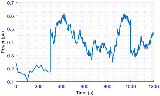 The key goal of this scenario is to investigate the reliability of the studied EPS with the proposed VSG based on the SMES system, considering RES penetration levels, nonlinearities, and uncertainties. The targeted power system is examined in the presence of wind power fluctuation at time t = 500 s and solar power fluctuations at time t = 0 s as shown in Figure 6, and the combined power variation of RESs, in this case, is considered lightly penetrated. Also, the total load comprises the residential and industrial loads, and the loading value is set at the heavy state (i.e., approximately at peak of 0.6 pu) as shown in Figure 7. Furthermore, the considered power grid with the proposed VSG-based SMES is examined in conditions of 100% of system inertia (i.e., high system inertia), 60% of system inertia (i.e., medium system inertia), and 20% of system inertia (i.e., low system inertia). Figure 8 displays the frequency response of the studied power grid under low RES penetration and heavy random loads in conditions of 100%, 60%, and 20% of system inertia, respectively. It is clear from Figure 8 that, in all the cases tested, the considered power grid with the proposed VSG-based SMES is more robust and faster than the traditional VSG design based on battery ESS; whereas, the considered power grid with the proposed VSG design based on the SMES system gives a small frequency deviation when the load is highly changed at t = 300 s and t = 1000 s. Therefore, the best performance of the system frequency is achieved by applying the proposed VSG design based on the SMES system, which in the circumstances of 100%, 60%, and 20% of system inertia will sustain the system frequency deviation within ±0.03 Hz. The performance specification of the considered power grid; maximum settling time (Ts), maximum undershoot (MUS), and maximum overshoot (MOS) with the proposed VSG design based on the SMES system and the traditional VSG design based on battery ESSs for this scenario are given in Table 5.