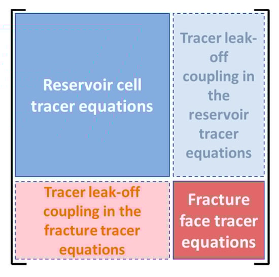 Matrix structure for the coupled reservoir and fracture domain tracer equations.