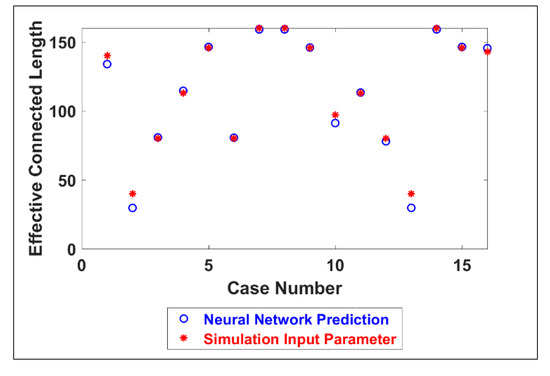 A neural network-based inverse model was used. The neural network was trained for a set of known tracer response curves and the effective connected fracture length from the simulation cases. The trained neural network was then used for estimating the effective connected fracture length for cases not included in the training. Figure 28 shows that the trained neural network prediction has a good match (error around 5%) with the effective connected fracture length used as the simulation input. A similar type of inverse model can be used for data from an actual field tracer test to estimate the effective connected fracture length. This parameter has a good correlation with the cumulative production.