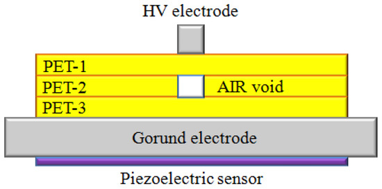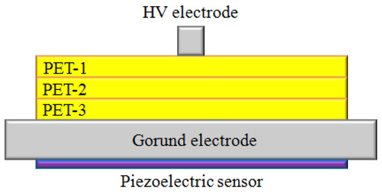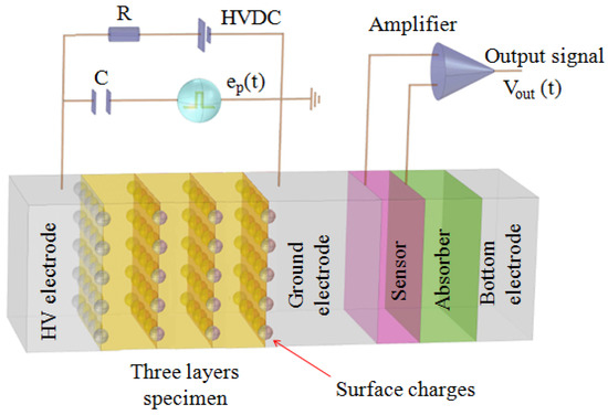 As reported in the introduction section, the aim of this work is to show that the PEA method is not suitable to measure space charges in the case of multilayer specimens containing an air void. This is because the air layer acts as a barrier for the acoustic waves and thus some charge signals are not able to be detected by the piezoelectric sensor.