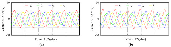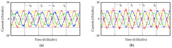 Current waveform of five-phase PMSM: (a) Current waveform of removing faulty phase after a short-circuit; (b) Current waveform after adding RC.