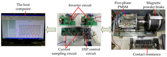 In order to verify the effectiveness of the proposed fault-tolerant control method in five-phase PMSM, the experimental platform with a digital signal processor (DSP) as the core was built. The experimental platform is shown in Figure 20.