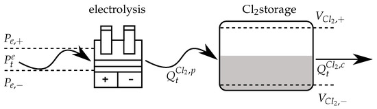 - Otashu, J.I.; Baldea, M. Demand response-oriented dynamic modeling and operational optimization of membrane-based chlor-alkali plants. Comput. Chem. Eng. 2019, 121, 396–408. [Google Scholar] [CrossRef]