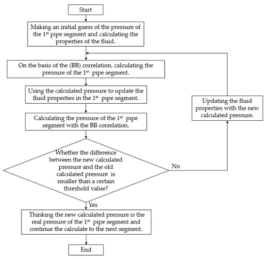 - On the basis of the BB correlation, identifying the flow pattern in the 1st pipe segment and calculating the new pressure within the 1st pipe segment. The introduction of the BB correlation can be found in Appendix B;