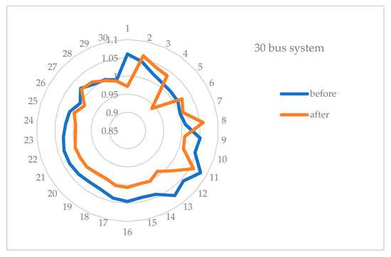 - Devaraj, D.; Roselyn, J.P. Genetic algorithm based reactive power dispatch for voltage stability improvement. Int. J. Electr. Power Energy Syst. 2010, 32, 1151–1156. [Google Scholar] [CrossRef]