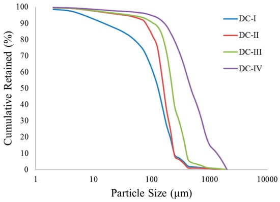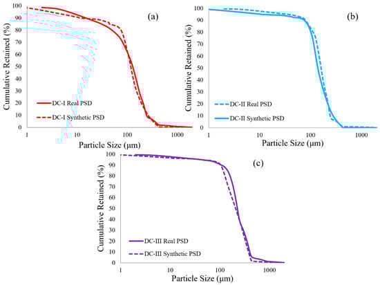 Four typical PSD’s of the McMurray formation are shown in Figure 5 [38]. This study attempted to develop design criteria for the three dominant PSD’s (DC-I, II and III). Figure 6 presents the PSD matching results between the synthetic sand-pack sample and the formation PSD. The clay used in the synthetic samples is kaolinite as it is rich and dominant in the McMurray formation [39].