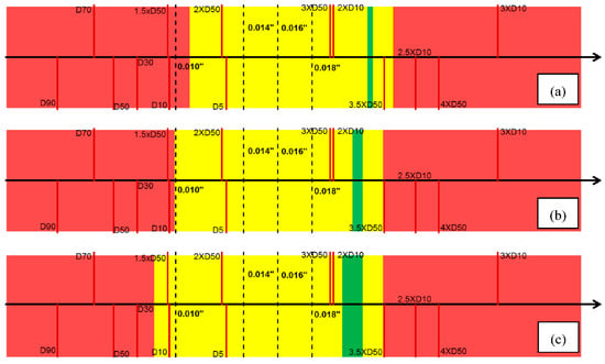 In this paper, the new criteria are also presented in TLS. The procedure for the TLS generation follows the same in Wang et al. [30]. Proposed criteria consider two SAGD scenarios: normal SAGD condition and aggressive SAGD condition. The three-phase flow was regarded as the aggressive SAGD condition to emulate the steam breakthrough in real SAGD. Figure 11, Figure 12, Figure 13, Figure 14, Figure 15 and Figure 16 show the new criteria for slotted liners for different PSD’s and different slot densities.