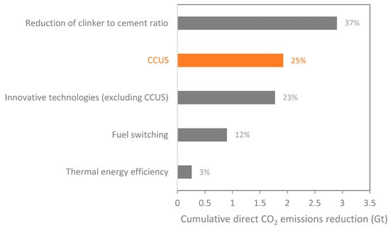 As shown in Figure 2, in the 2DS, the largest cumulative direct CO2 emissions reduction by 2050, compared to RTS, comes from the reduction in the clinker ratio, followed by CCUS, development of clean production technologies, fuel substitution, and thermal efficiency [3].