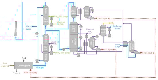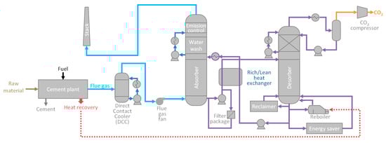 Process flow sheet of a CAP process integrated in a cement plant (adapted from [46]).