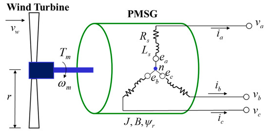 The input to the PMSG model is the wind turbine mechanical torque, , which is relative to the wind turbine’s power, , by