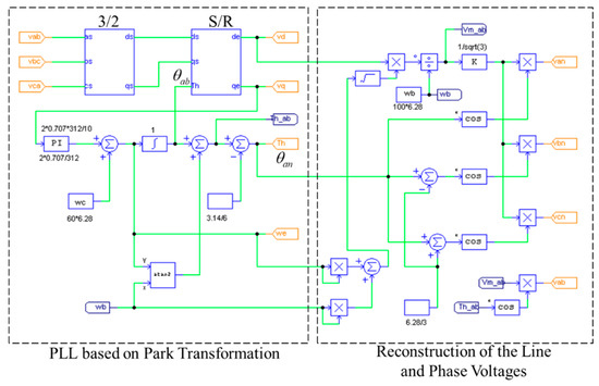PLL scheme with the line and phase voltages reconstruction in PSIM.