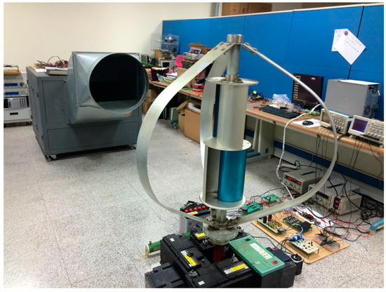 Figure 16 shows the experimental platform for the verification of the proposed PVOC control of a wind generator for unity power factor correction. The wind is generated by an inverter driven blower which can produce variable wind speed. A vertical axis wind turbine charger, which consists of a 400-W wind turbine, a PWM controlled rectifier, a 12-V battery, and a TI TMS320F28335 DSP chip, has been employed to verify the proposed control method.