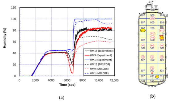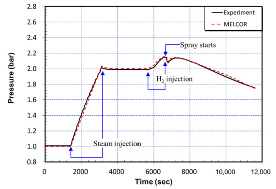 - Kim, J.; Lee, U.; Hong, S.-W.; Kim, S.-B.; Kim, H.-D. Spray effect on the behavior of hydrogen during severe accidents by a loss-of-coolant in the APR1400 containment. Int. Commun. Heat Mass Transf. 2006, 33, 1207–1216. [Google Scholar] [CrossRef]