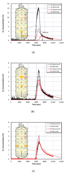 - The distribution of maximum hydrogen concentration values at each measurement position is not accurately predicted, as shown in Figure 14b,c.