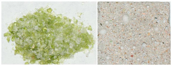- Mohajerani, A.; Vajna, J.; Cheung, T.H.H.; Kurmus, H.; Arulrajah, A.; Horpibulsuk, S. Practical recycling applications of crushed waste glass in construction materials: A review. Constr. Build. Mater. 2017, 156, 443–467. [Google Scholar] [CrossRef]