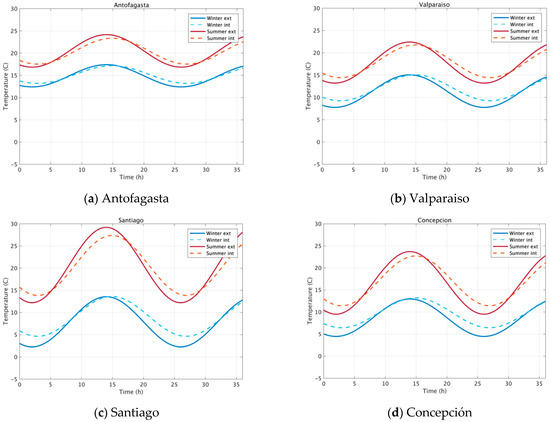 - Ministerío de Vivienda y Urbanísmo. Artículo 4.1.10. Manual de Aplicación. Reglamentación Térmica. Ordenanza General de Urbanísmo y Construcciones; Ministerío de Vivienda y Urbanísmo: Santiago, Chile, 2016. [Google Scholar]