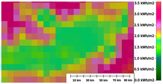 Therefore, in regions where no ground measurements are available, several institutions have implemented their own climatological data modeling systems, based on satellite data and integrated on GIS platforms [,,,,]. Huld [] recently developed PVMAPS a set of computational tools and climate data for GRASS GIS to calculate solar radiation on large areas.