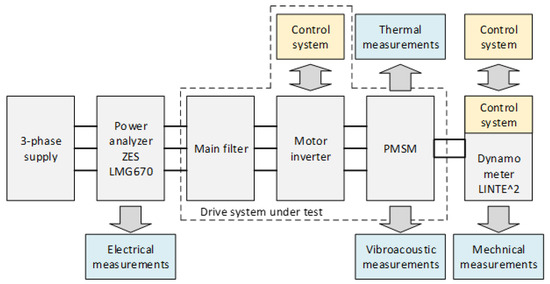 In electric drive technology, the Power-level HIL (PHIL) and Controller-level HIL (CHIL) have been distinguished [14,15,16]. PHIL and CHIL simulations have several profits concerning electric drive validation [17,18,19,20,21,22,23,24,25]. Creating an emulation of the motor, which can be considered as a PHIL simulation, enables the testing of the drive inverter and its control system before the actual motor is developed [26]. The above is accomplished using power amplifiers to emulate motor behaviour [27]. Taking the CHIL into consideration, both the drive inverter and the motor are employed on a real-time simulator. Therefore, both variants of HIL simulation have substantial values regarding rapid prototyping and testing of the electric drive structures.