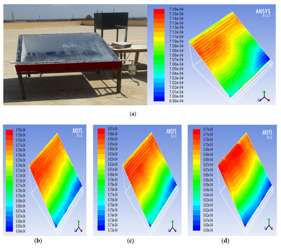 16] investigated a two-dimensional CFD simulation appreciating the hourly productivity of a single slope for the solar still. Furthermore, a new equation depending on the Chilton–Colburn analogy was suggested to evaluate the yield of the solar still. The results indicated that there is satisfactory conformity with the data of the well-renowned models (especially the Chilton–Colburn relation).