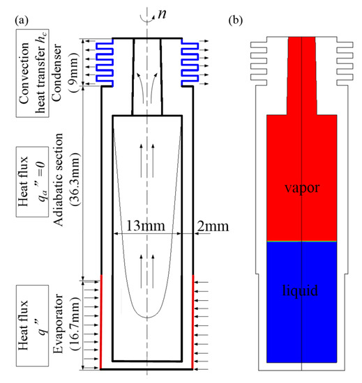 - Vasiliev, L.L.; Khrolenok, V.V. Centrifugal coaxial heat pipes. In Proceedings of the 2nd International Heat Pipe Conference, Bologna, Italy, 31 March–2 April 1976; pp. 293–302. [Google Scholar]