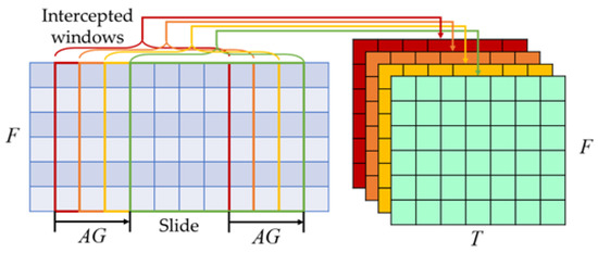 To extract the consumption patterns of different users, we utilize the same intercepted window to consecutively intercept different users’ data. Then we can obtain a series of two-dimensional grids with the same length and height. For user , we use to label the intercepted window of the time-series to judge whether it is electricity theft or not, as shown in Figure 2. Then, we build a nonlinear map function from an input time-series to predict a class label formula: