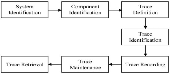 In Figure 2, the first stage is system identification, which identifies a system under construction. The automotive system under development needs to be properly analyzed following the requirements specifications document. As a result, we can get information about the scope, sections, and components of the system [15]. The process of traceability needs to be started as the requirements process starts. All the activities followed by the requirements engineering process need to be mapped to record the trace information. In the components identification stage, after identification of the automotive system, it is modularized into manageable compartments called components. Each component is developed based on the priority of requirements. Another follows a component, so the trace continues, and all the information is recorded against each component [16]. In this regard, the components-based traceability approach provides an efficient mechanism to record component traces. In the case of model-oriented development, each metamodel is treated as a component, and the trace is recorded accordingly.