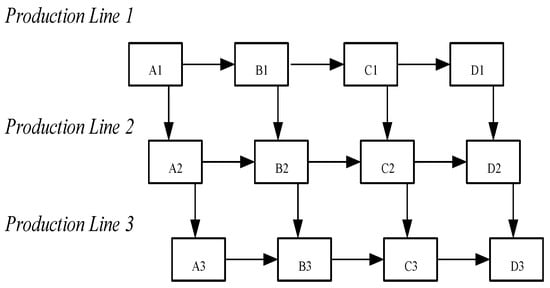 This mass manufacturing process would be more efficient if it follows the agile, incremental manufacturing process. The below figure represents the four necessary manufacturing activities as A, B, C, and D, whereas the numbering 1, 2, 3 represent the first product, other product, and the third product, respectively. The manufacturing process is pipelined in such a way that after completing the first activity of stamping on product one, the other product is brought for stamping, and after that the third one. Similarly, the next three activities are carried out in the same way and shown in Figure 5.
