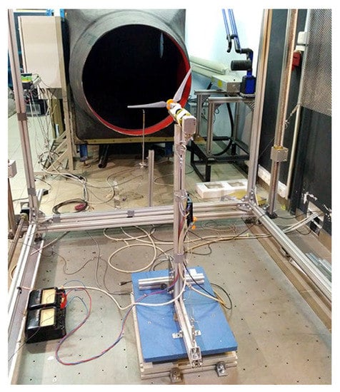 The current rotational speed was measured with the torquemeter. The electrical circuit of the stand was connected to a group of batteries, with current and voltage gauges attached, so that the power generated during the experiment was controlled and accumulated. The wind tunnel test section was equipped with atmospheric pressure, temperature, and relative humidity sensors. A Prandtl-type Pitot tube was placed at the tunnel outlet to assess wind speed on the basis of measurements of the dynamic pressure. The measurements were conducted at constant wind speeds, whereas the rotational speed of the blades was increased with a certain step. Movement of the rotor was enforced by a motor/generator device, which was powered with circuit batteries. All the data were collected by a digital acquisition system.